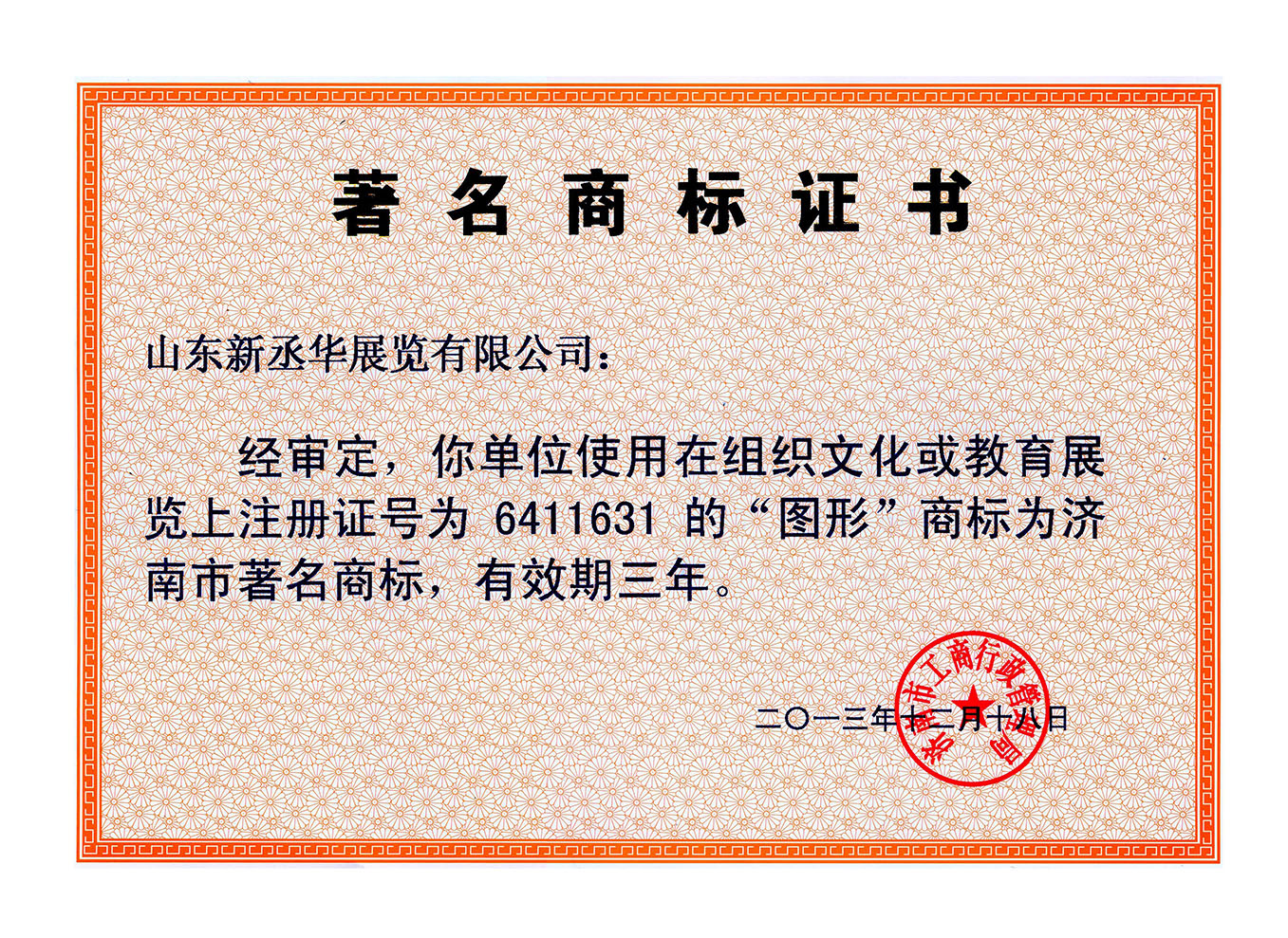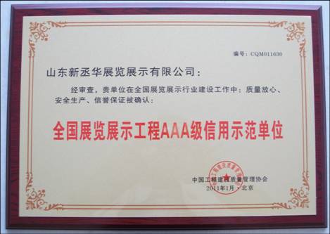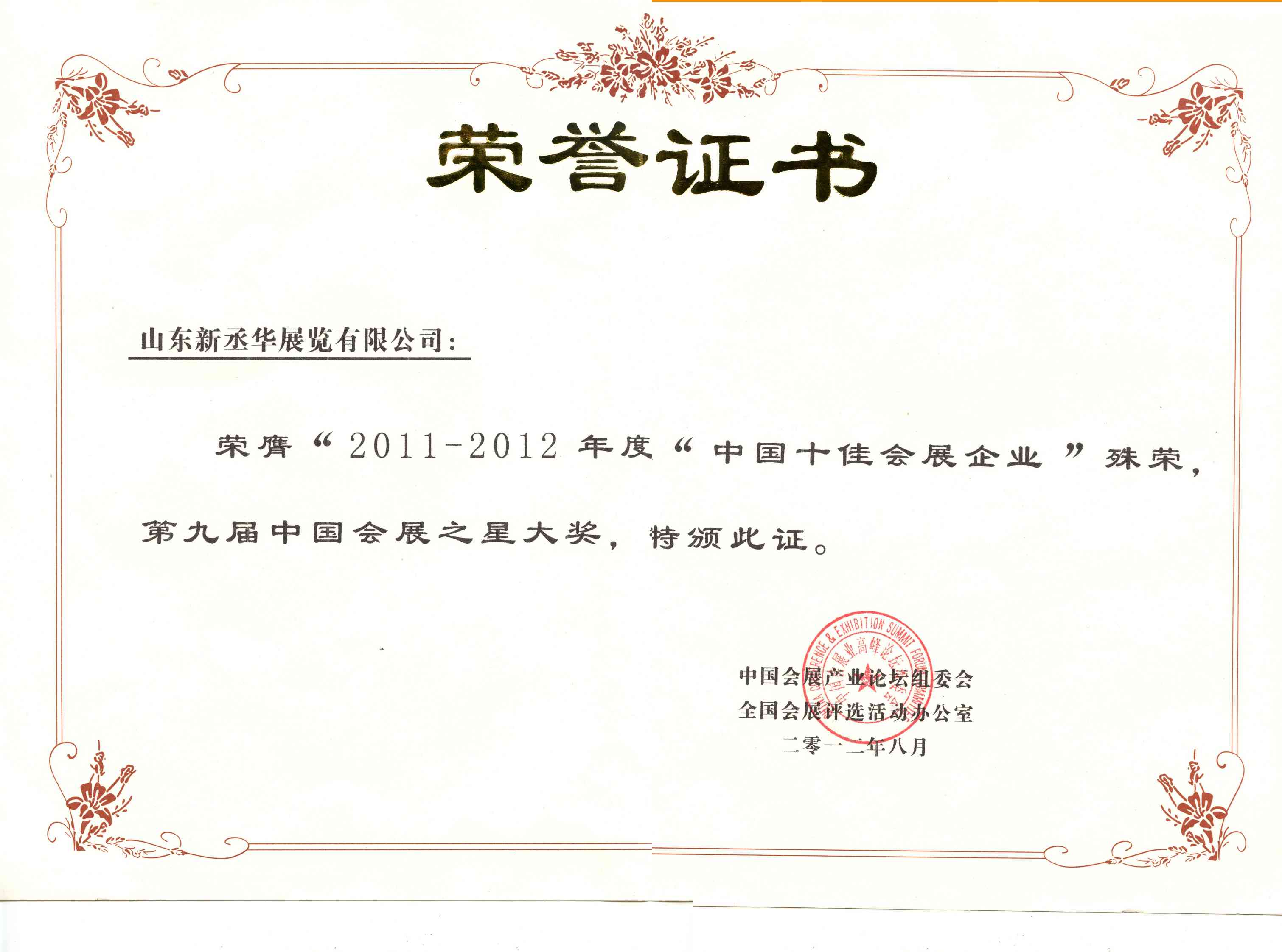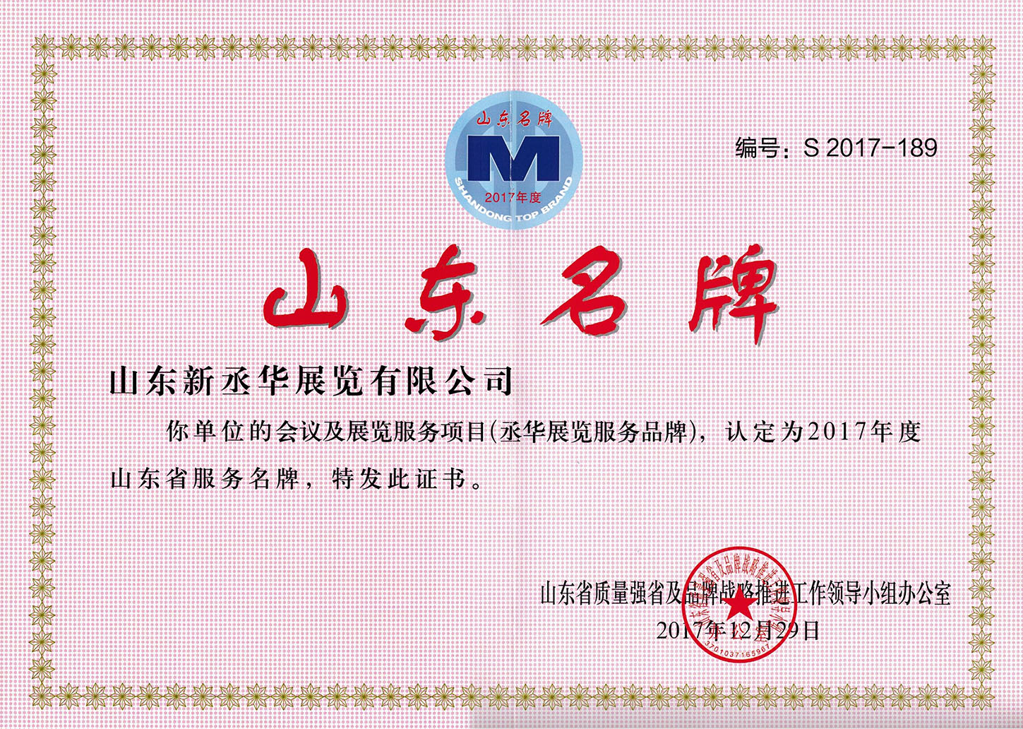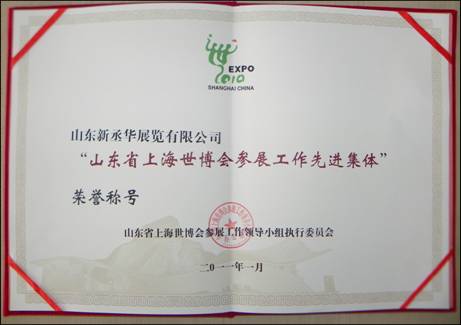 新丞華國際會展(山東)集團有限公司,先后榮獲了“濟南市建功立業(yè)先進單位”、 “濟南市優(yōu)秀會展企業(yè)”“山東省會展行業(yè)優(yōu)秀會展組織者”、“2010年度中國十大優(yōu)秀會展公司”、“濟南市先進民營企業(yè)”“山東省服務(wù)名牌”等近三十項榮譽稱號。