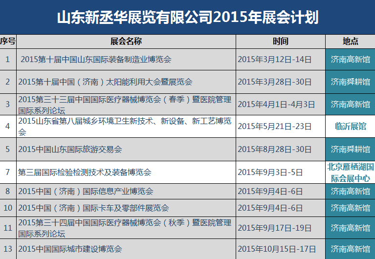 丞華展覽2015年全年展會計劃!