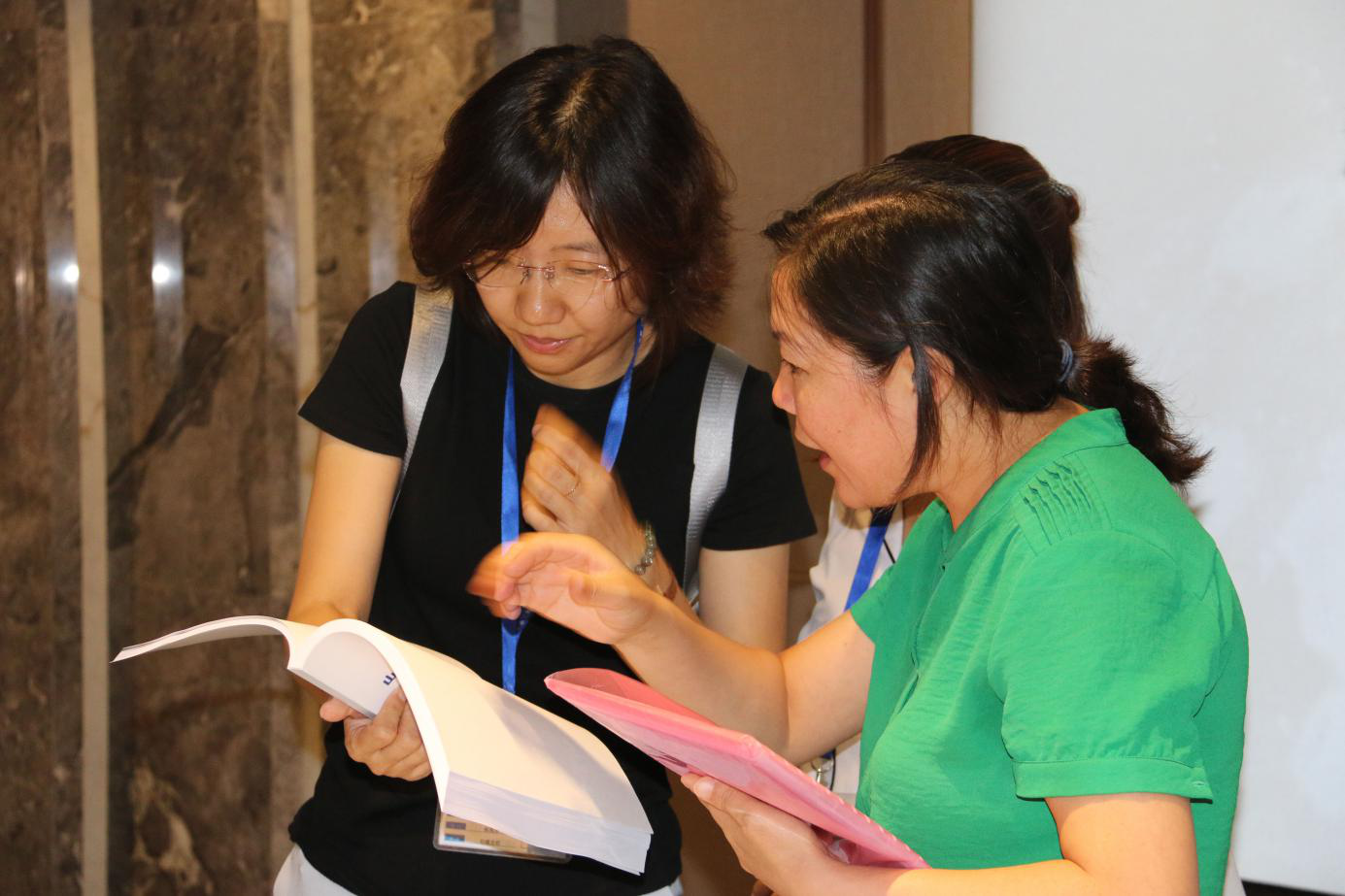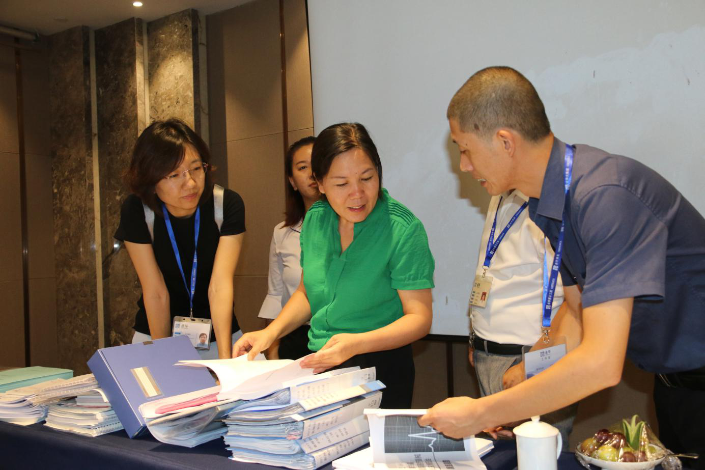 評審組專家在對新丞華展覽公司標準化文件進行查閱