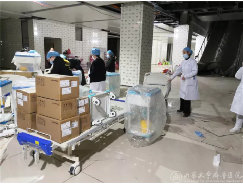 今天下午,山東醫(yī)療隊全體人員正式進(jìn)駐大別山區(qū)域醫(yī)療中心。為今晚收住患者做最后的準(zhǔn)備。