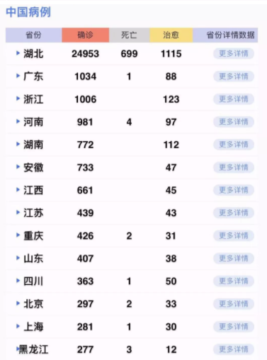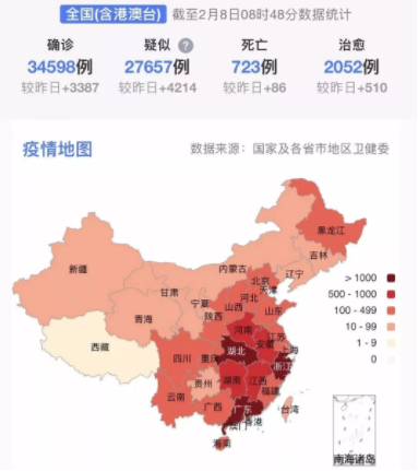 31個省(自治區(qū)、直轄市)和新疆生產(chǎn)建設(shè)兵團累計報告,現(xiàn)有確診病例31774例(其中重癥病例6101例),累計治愈出院2050例,累計死亡722例,累計報告確診病例34546例(黑龍江省核減14例),現(xiàn)有疑似病例27657例。累計追蹤到密切接觸者345498人,尚在醫(yī)學(xué)觀察的密切接觸者189660人。