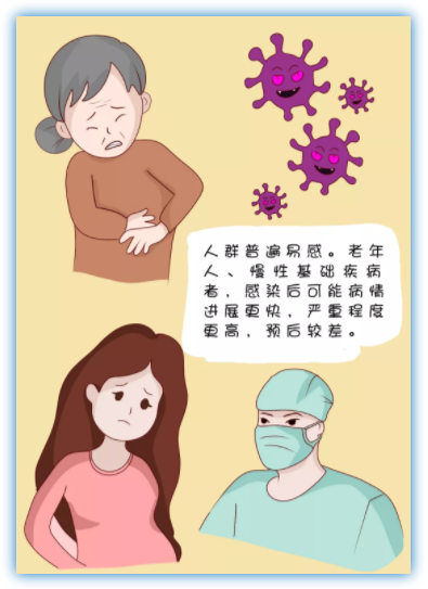 老年人、慢性基礎(chǔ)疾病者,感染后可能病情進展更快,嚴重程度更高,預后較差。