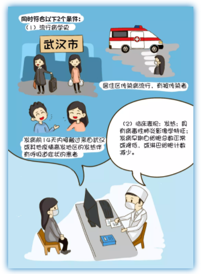 (1)流行病學史:在發(fā)病前兩周內(nèi)有武漢市或其他疫情高發(fā)地區(qū)的旅行或居住史,或發(fā)病前14天內(nèi)接觸過來自武漢或其他疫情高發(fā)地區(qū)的發(fā)熱伴有呼吸道癥狀的患者;居住區(qū)傳染病流行,有被傳染者。