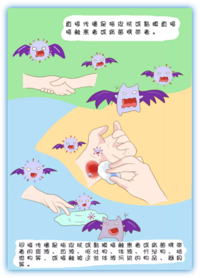 直接接觸傳播是指皮膚或黏膜直接接觸患者或病菌攜帶者。
