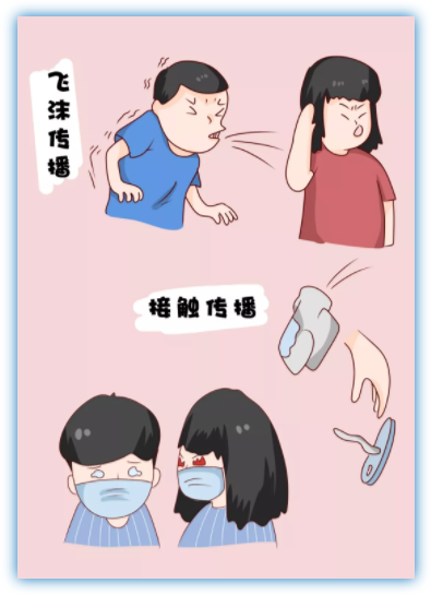 ①吸入患者或病毒攜帶者咳嗽或打噴嚏時噴出的呼吸道飛沫;