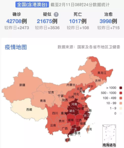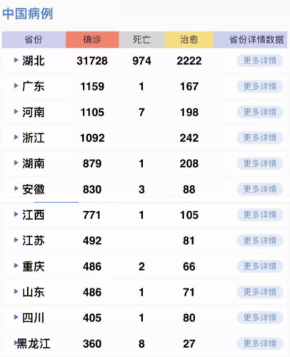 據(jù)31個?。ㄗ灾螀^(qū)、直轄市)和新疆生產(chǎn)建設兵團報告,現(xiàn)有確診病例37626例(其中重癥病例7333例),累計治愈出院病例3996例(浙江核減1例),累計死亡病例1016例,累計報告確診病例42638例(浙江核減12例,江西核增1例),現(xiàn)有疑似病例21675例。累計追蹤到密切接觸者428438人,尚在醫(yī)學觀察的密切接觸者187728人。