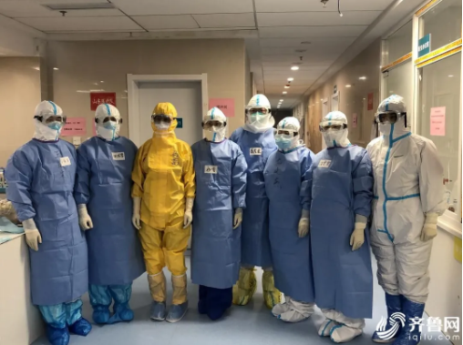 即將集體進入隔離病房的山東醫(yī)療隊醫(yī)護人員。