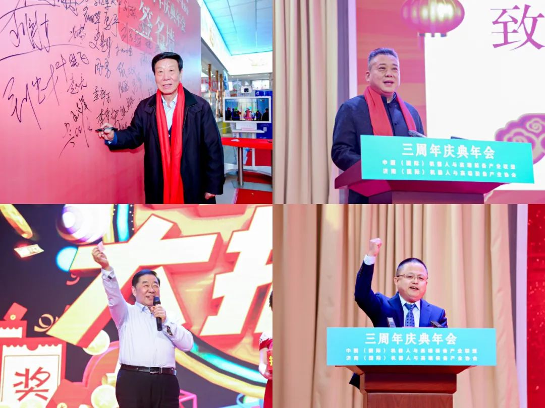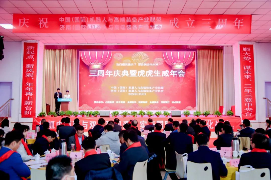 1月8日下午,中國(國際)機器人與高端裝備產業(yè)聯盟、濟南(國際)機器人與高端裝備產業(yè)協會隆重舉行協會成立三周年慶典和三生萬物虎虎生威迎春晚會。中、德、法120家企業(yè)200名代表參加會議,會議對三年來協會發(fā)展優(yōu)秀企業(yè)和個人進行了表彰,協會發(fā)布了促進內循環(huán)與雙循環(huán)增進產業(yè)鏈配套的倡議書,與中央廣播電視總臺中國交通廣播進行了合作簽約以及產學研、產業(yè)鏈合作等簽約,協會藝術團組織了精彩的文藝節(jié)目助力三周年慶典。