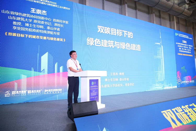 會(huì)上,山東省綠色建筑創(chuàng)新協(xié)同中心首席科學(xué)家王崇杰教授以《雙碳目標(biāo)下的城市發(fā)展與綠色建筑》為內(nèi)容,就建筑的綠色建造對(duì)城市發(fā)展的影響,如何通過(guò)推進(jìn)綠色建筑,讓城市發(fā)展堅(jiān)定邁向“碳達(dá)峰 碳中和”目標(biāo)進(jìn)行了系統(tǒng)的闡述。