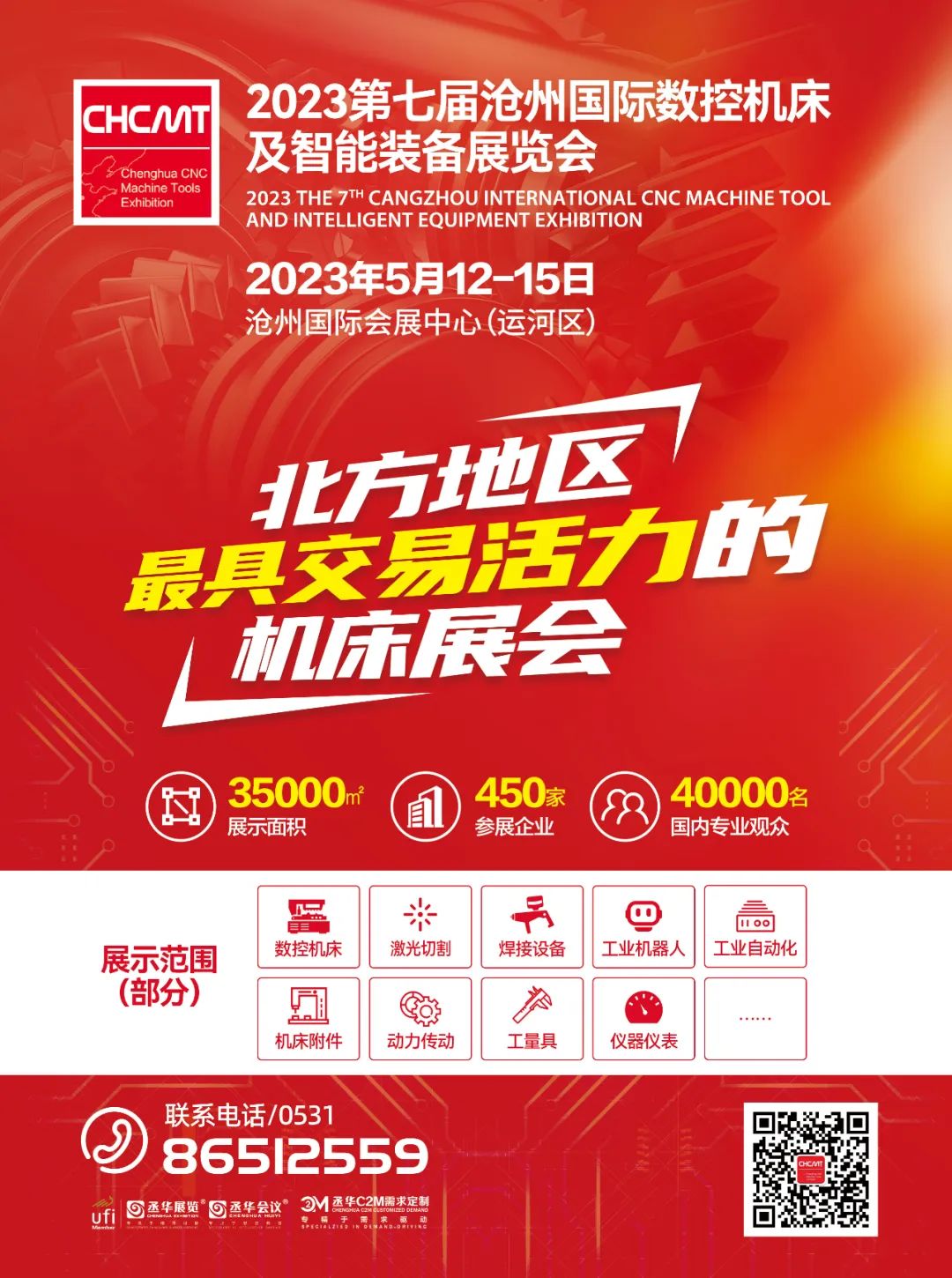 本次展會將啟用滄州國際會展中心室內(nèi)全館展示,重點展示數(shù)控機床、加工中心、激光切割設備、焊接設備、工業(yè)機器人、特種加工設備、動力傳動、檢驗和測量設備以及各種機械功能部件等產(chǎn)品。
