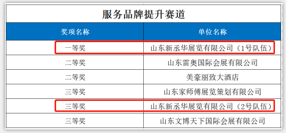 日前,由濟(jì)南市商務(wù)局、市總工會指導(dǎo),濟(jì)南文旅發(fā)展集團(tuán)、濟(jì)南市會展業(yè)協(xié)會聯(lián)合主辦,山東省會展產(chǎn)業(yè)發(fā)展協(xié)會、濟(jì)南市商務(wù)促進(jìn)中心支持,山東國際會展集團(tuán)具體承辦的濟(jì)南市首屆會展行業(yè)“項目策劃、特裝設(shè)計、服務(wù)品牌提升”創(chuàng)意大賽決賽在線上圓滿落下帷幕。山東新丞華展覽有限公司分別榮獲“服務(wù)品牌提升”比賽一等獎、三等獎。