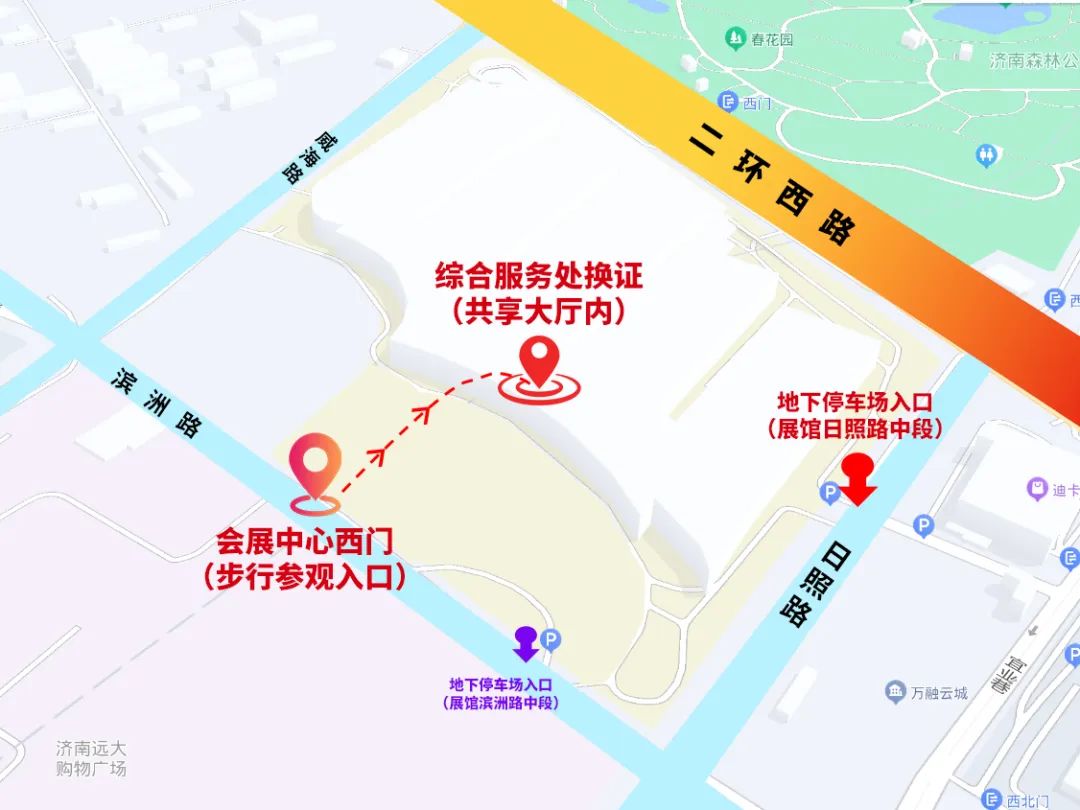 (會展中心西門為步行出入口,所有自駕車輛請從日照路或濱洲路地下停車場入場)