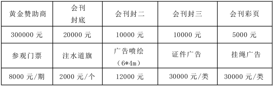 2. 精標(biāo)展位基本配置:3m×3m展位(包括精裝標(biāo)準(zhǔn)展臺(tái)、布幅廣告門楣、地毯、一桌兩椅、門楣射燈、展位射燈、220V電源插座);