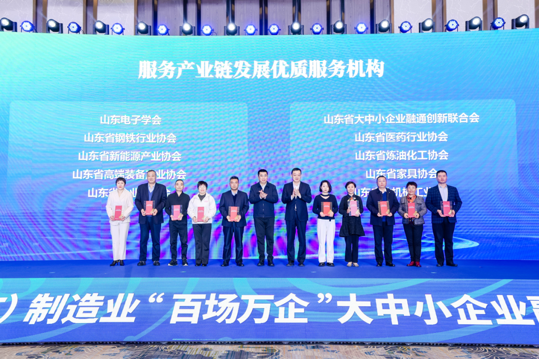 會上,啟動了全國中小企業(yè)服務“一張網”互聯互通山東建設試點,發(fā)布了“魯鏈全球”平臺,6家企業(yè)進行了戰(zhàn)略合作協議簽約。同時,為十大服務產業(yè)鏈發(fā)展優(yōu)質龍頭企業(yè)和十大服務產業(yè)鏈發(fā)展優(yōu)質服務機構頒獎,發(fā)起“十鏈百群萬企 主流媒體山東行”暨《“鏈”接山東》宣傳行動倡議,山東省工業(yè)和信息化廳、山東廣播電視臺攜手打造的全省首檔融鏈固鏈大型融媒體訪談欄目《“鏈”接山東》正式開播。