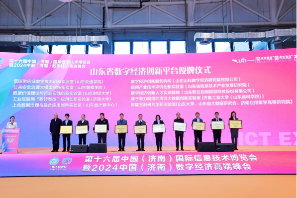 開幕式現(xiàn)場進行了山東省數(shù)字經(jīng)濟創(chuàng)新平臺、山東省示范型數(shù)字經(jīng)濟園區(qū)、山東省示范型“產(chǎn)業(yè)大腦”、山東省人工智能大模型典型應(yīng)用案例、山東省智算云服務(wù)中心、山東省數(shù)據(jù)治理優(yōu)秀產(chǎn)品的授牌儀式,這些數(shù)字平臺和前沿成果恰似強勁引擎,為我國數(shù)字經(jīng)濟蓬勃發(fā)展注入澎湃動力。