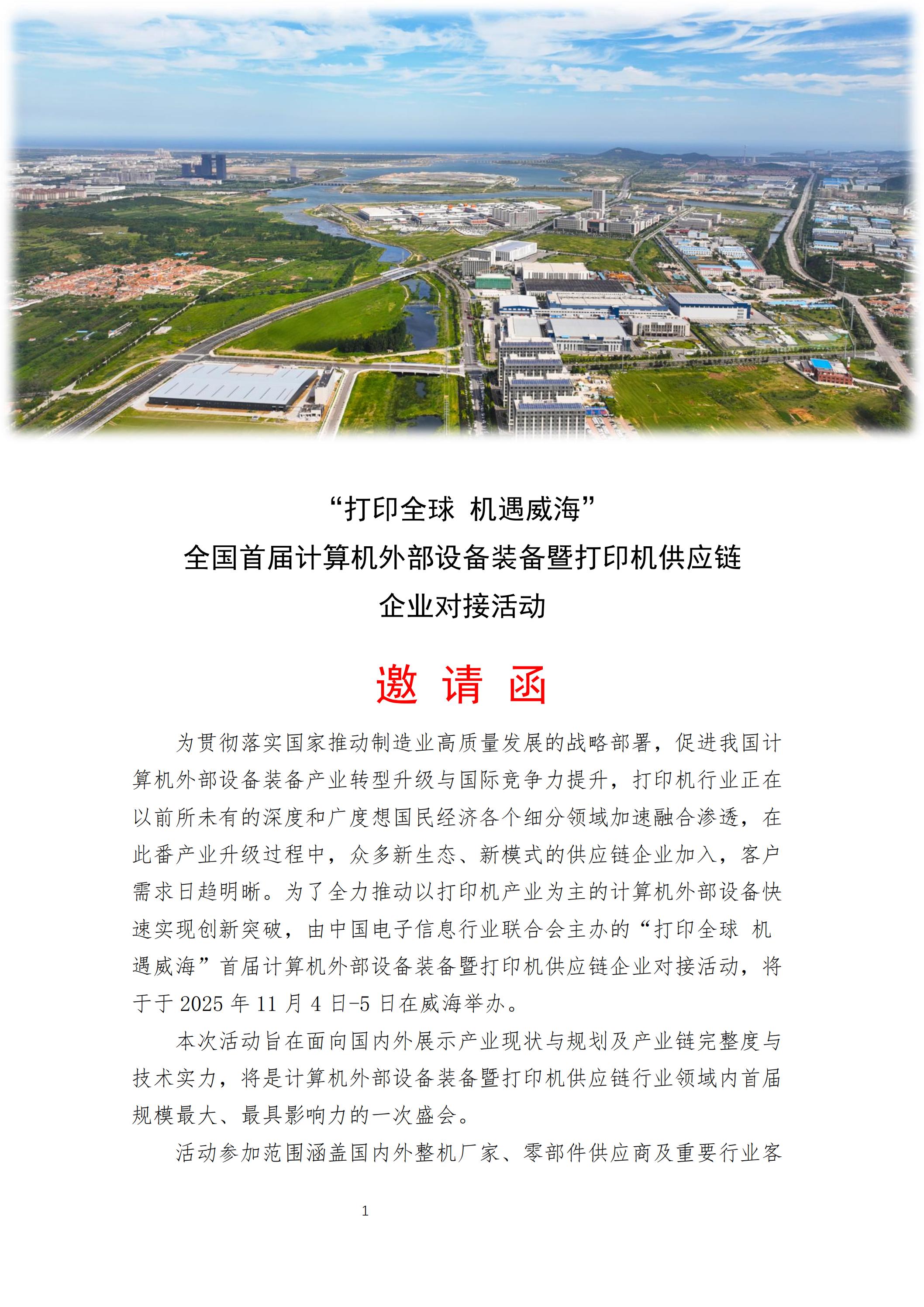 官方邀請函來了!全國首屆計算機外部設(shè)備裝備暨打印機供應(yīng)鏈盛會11月在威海舉辦