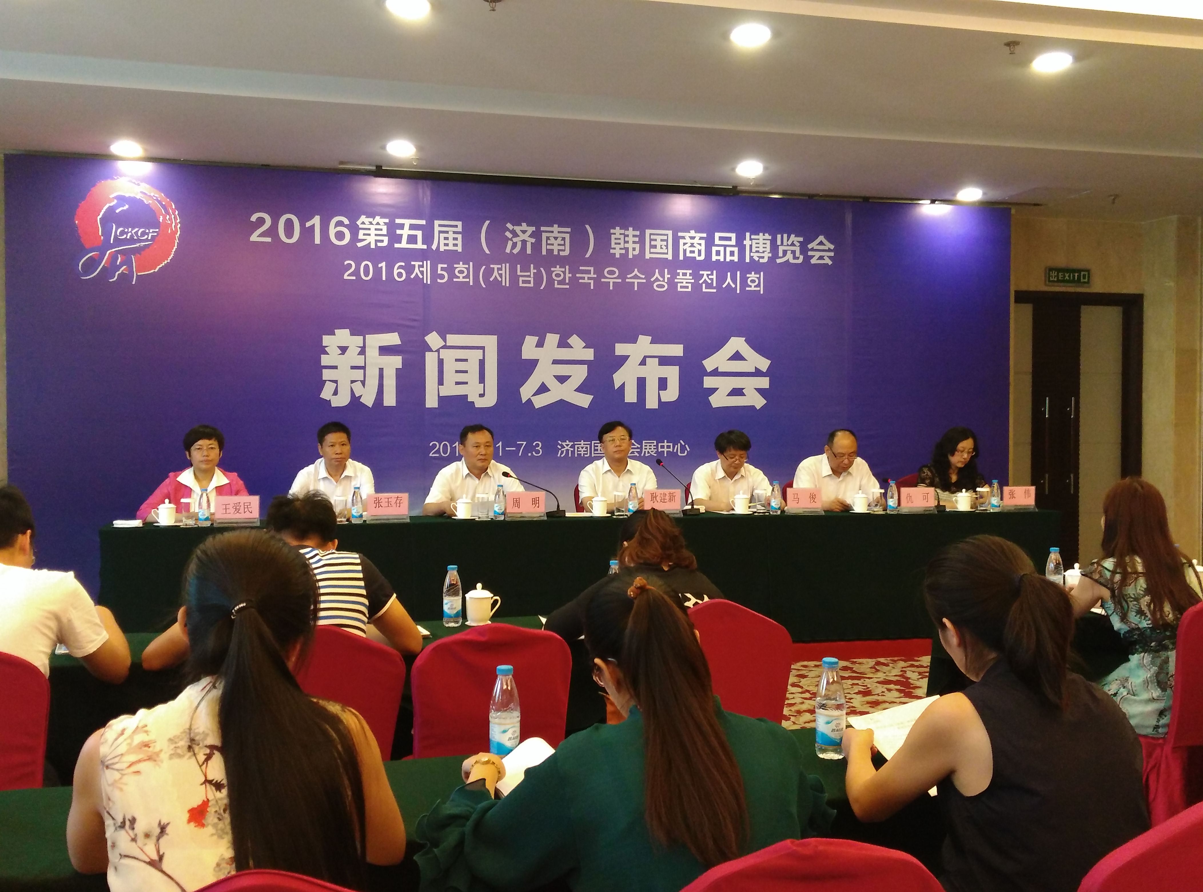 6月27日,“2016第五屆(濟南)韓國商品博覽會(以下簡稱:韓博會)”新聞發(fā)布會在濟南舜耕會堂舉行。