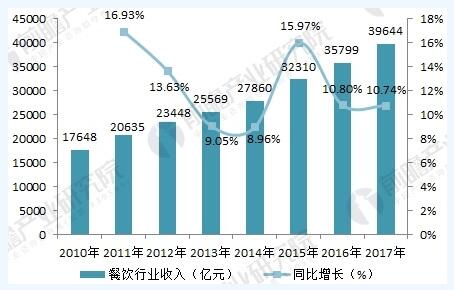 我國餐飲業(yè)發(fā)達(dá),是全球知名的飲食大國。而且隨著經(jīng)濟(jì)增長,人們生活水平提高,在餐飲方面的消費(fèi)與日俱增。據(jù)國家統(tǒng)計(jì)局?jǐn)?shù)據(jù)顯示,2017全年我國餐飲收入為39644億元,較上一年同比增長10.74%。