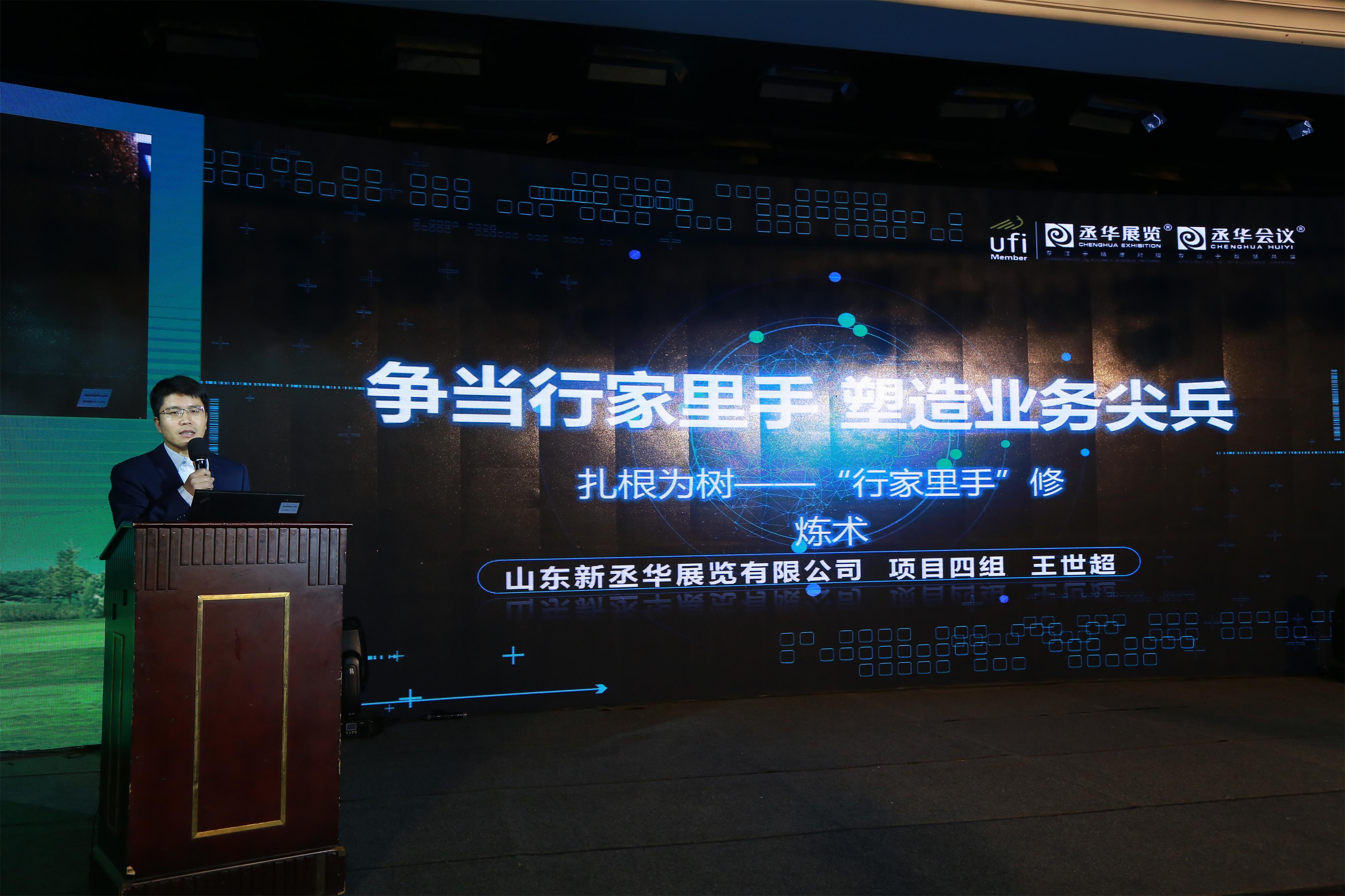 上午九點,在一段別開生面的開場視頻結(jié)束后,公司市場總監(jiān)暨年會上半場主持人耿鵬走上舞臺,向與會人員介紹了到會領(lǐng)導(dǎo)和嘉賓,拉開了丞華展覽2018年會的序幕。