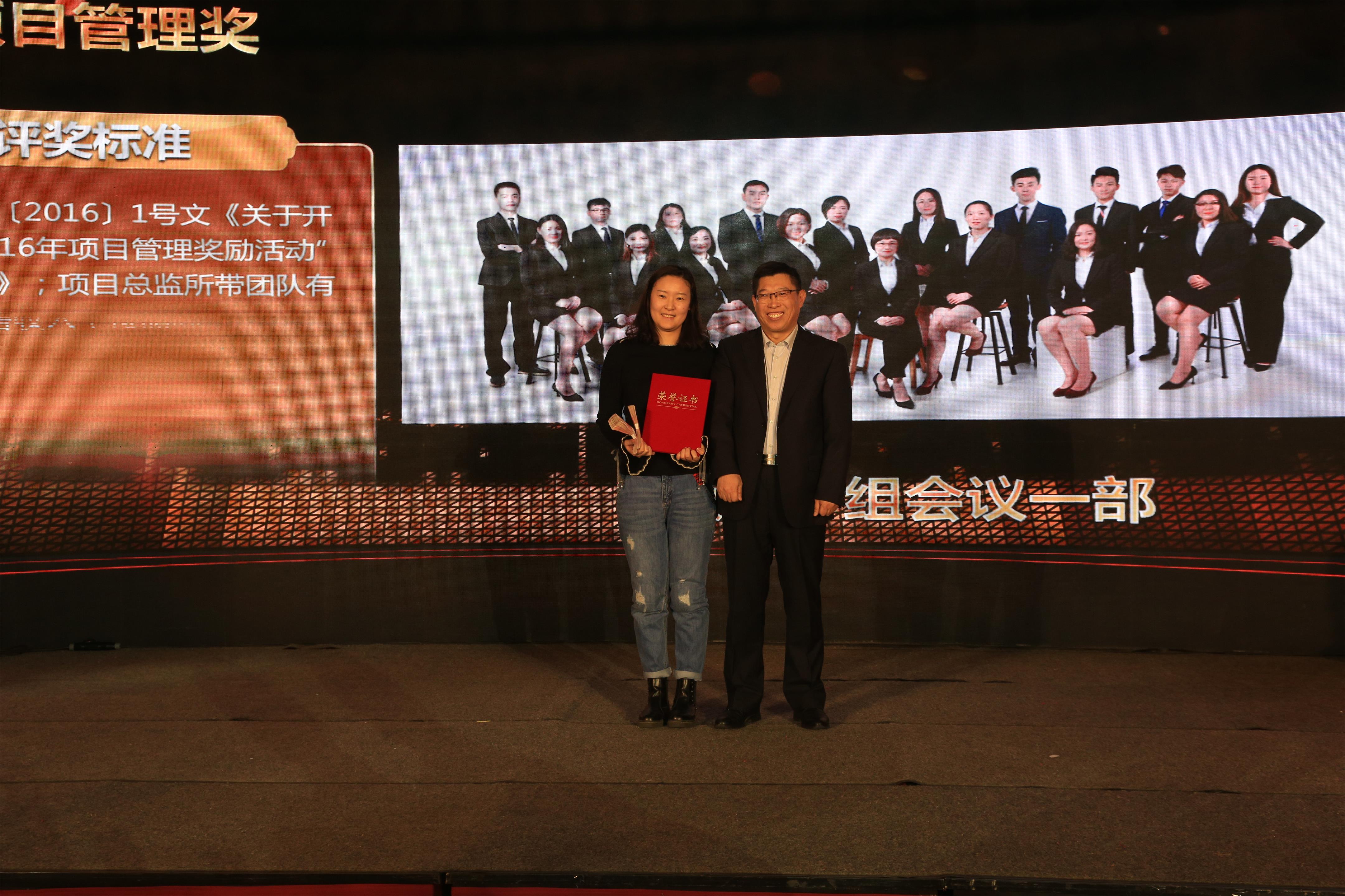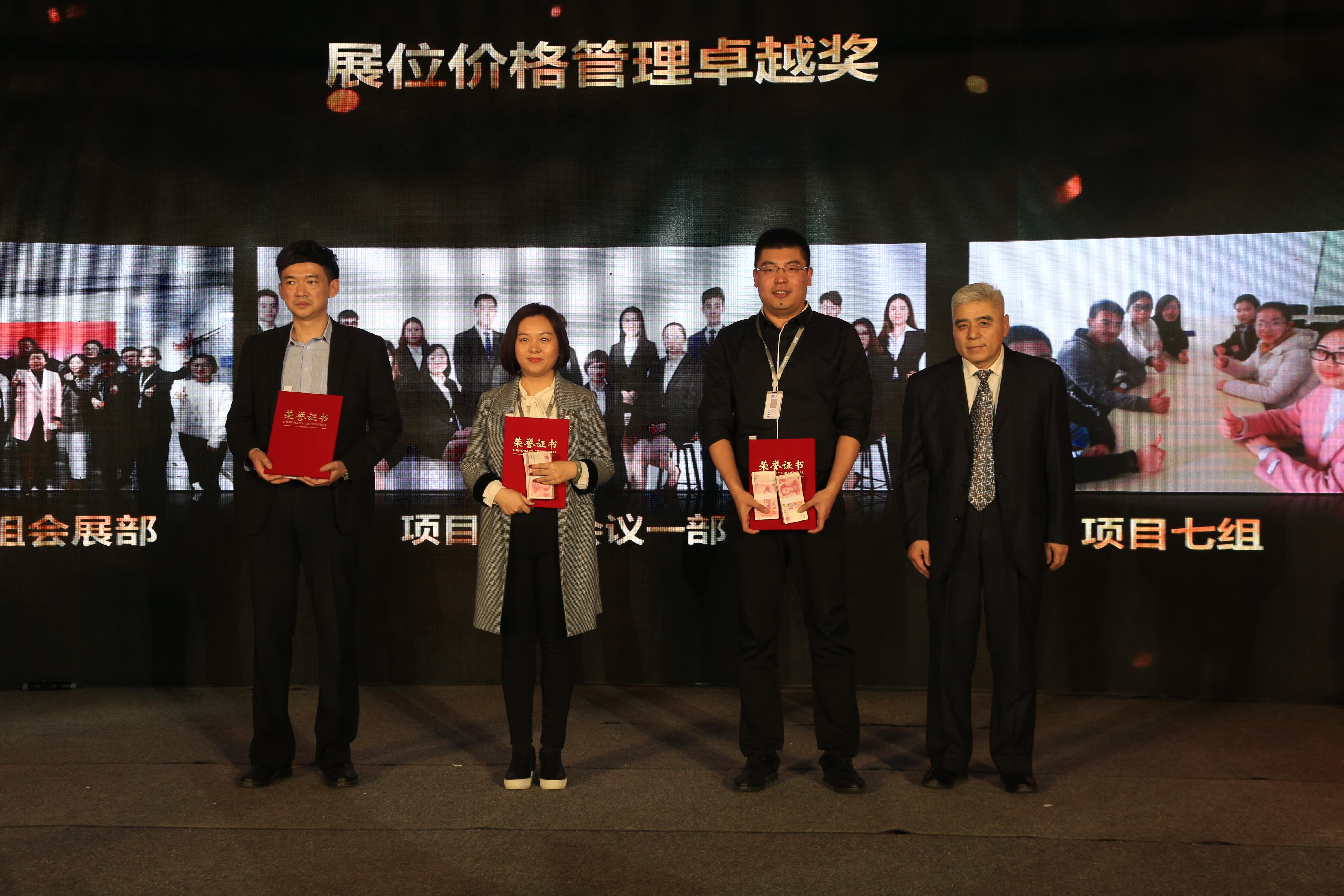 公司業(yè)務(wù)副總祿鳳文為展位價格管理卓越獎獲得者:項目一組會展部、項目一組會議一部、項目七組頒獎