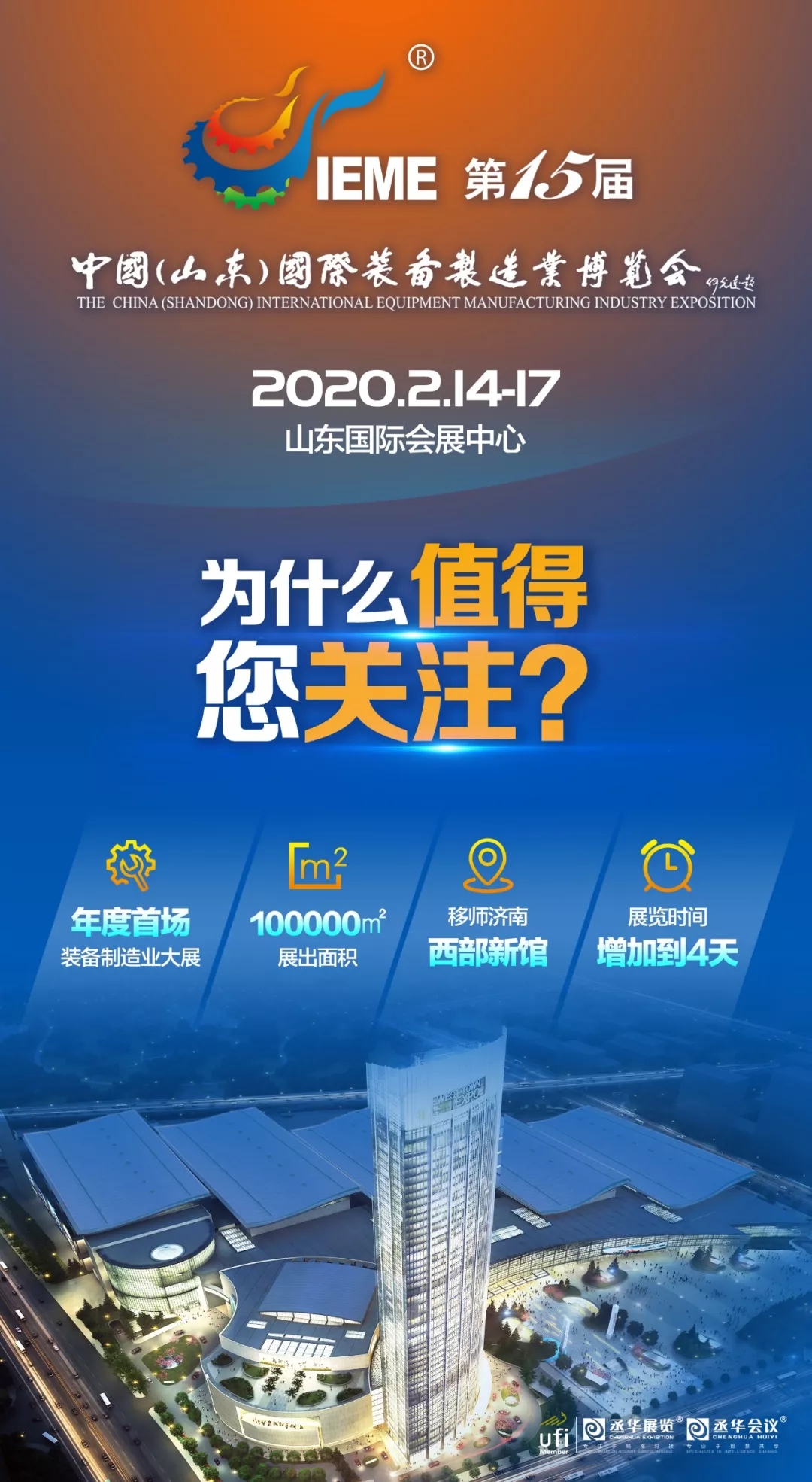 2020年2月14-17日,全新打造的2020IEME山東裝備博覽會(huì)將移師山東國(guó)際會(huì)展中心舉行。預(yù)計(jì)展會(huì)面積超過10萬平方米,匯聚全球2000家展商。本屆博覽會(huì)展期增加至四天,不僅規(guī)模空前,而且在主題專區(qū)的設(shè)立及劃分上亦將更加精準(zhǔn)與極致,并增設(shè)國(guó)際展館。全力打造高端裝備展示交流平臺(tái),向業(yè)界呈現(xiàn)更為專業(yè)化、高品質(zhì)的嶄新面貌。將打響2020年山東首個(gè)規(guī)模大、質(zhì)量高、影響力強(qiáng)的開年首展。