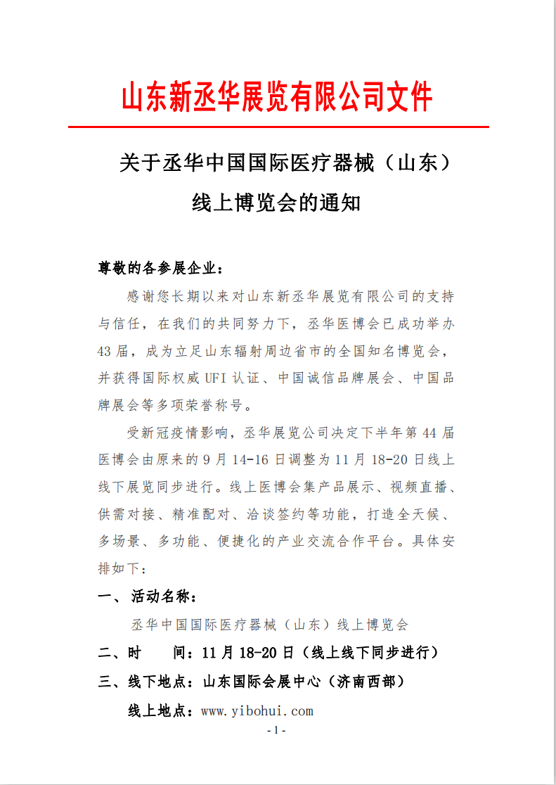 關(guān)于丞華中國國際醫(yī)療器械(山東) 線上博覽會的通知