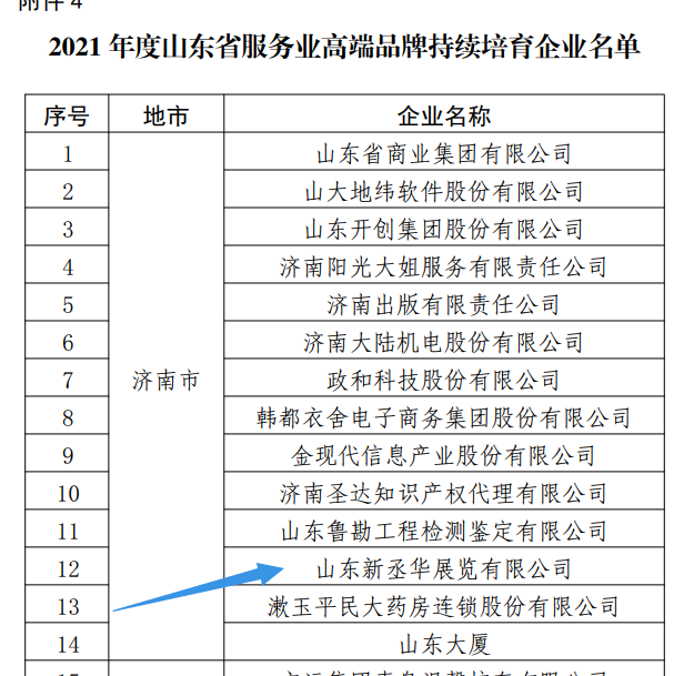 “丞華展覽”2020年度已首次榮登山東省高端品牌培育企業(yè)榜單,2021年是公司第二次入選。再次入選此名單,不僅是公司綜合服務(wù)實(shí)力的體現(xiàn),也是公司又一張靚麗的“丞華名片”。