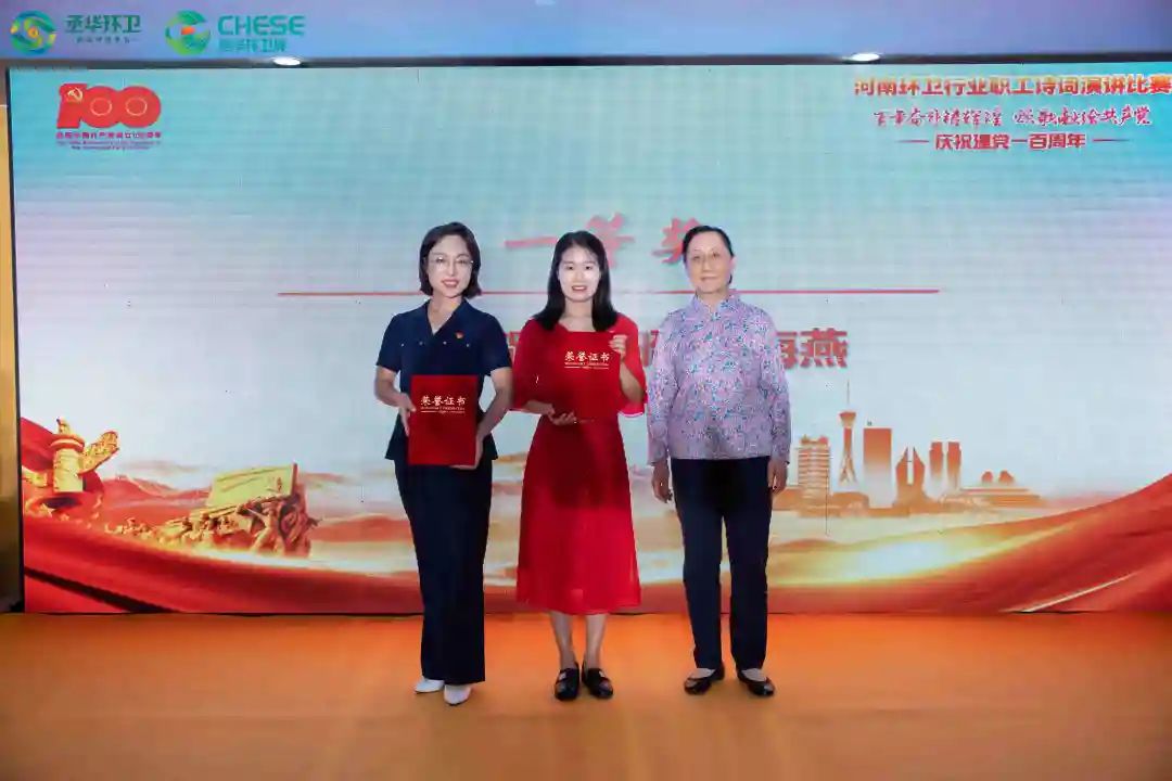 值建黨百年之際,河南省廣大環(huán)衛(wèi)干部職工以詩詞演講比賽的形式,歌頌黨的領(lǐng)導(dǎo),展望環(huán)衛(wèi)事業(yè),以真實(shí)的身邊事跡反映環(huán)衛(wèi)精神,表達(dá)對(duì)黨和祖國的無限熱愛?;顒?dòng)氣氛熱烈,現(xiàn)場競爭激烈,最終鄭州市環(huán)衛(wèi)局代表隊(duì)的李昭、岳海燕與南陽市環(huán)衛(wèi)處代表隊(duì)的秦田璐并列第一名,獲得“丞華杯—河南省環(huán)衛(wèi)行業(yè)職工詩詞演講比賽”一等獎(jiǎng)。