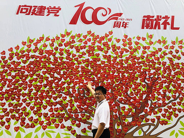 今日,公司在前臺(tái)一早就擺放上美麗的鮮花,并在小廣場(chǎng)外設(shè)立了慶祝建黨100周年祝福墻,公司員工紛紛在心型卡片上寫下祝福語(yǔ)粘貼到墻上,以示對(duì)黨的祝福。
