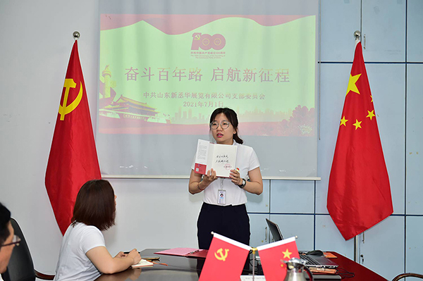 紅色華誕,光輝歷程。7月1日,是黨的生日,今年恰逢中國(guó)共產(chǎn)黨成立100周年,山東新丞華展覽有限公司黨支部通過(guò)舉辦多個(gè)活動(dòng)慶祝黨的百年華誕。公司全體黨員、預(yù)備黨員和入黨積極分子30余人參加了此次活動(dòng)。