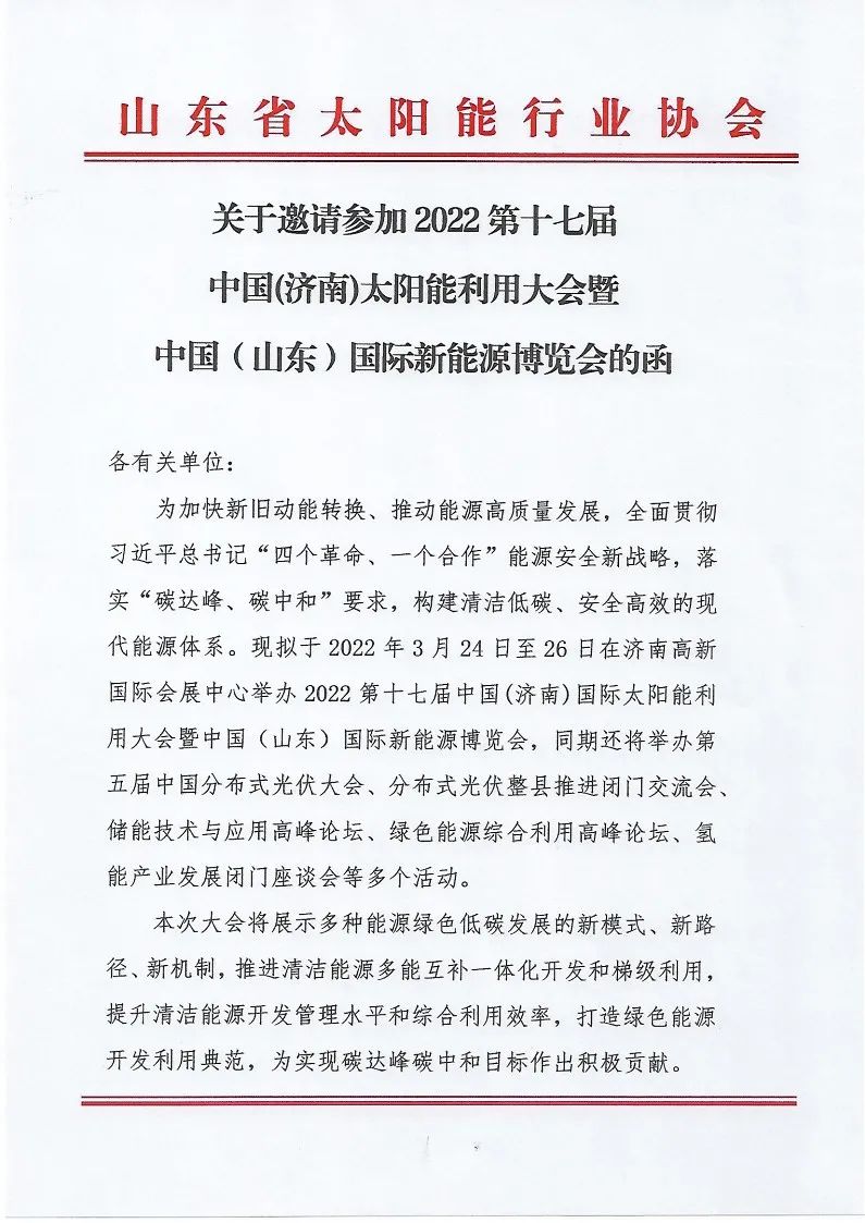 2022第十七屆中國(濟南)國際太陽能利用大會暨中國(山東)國際新能源博覽會