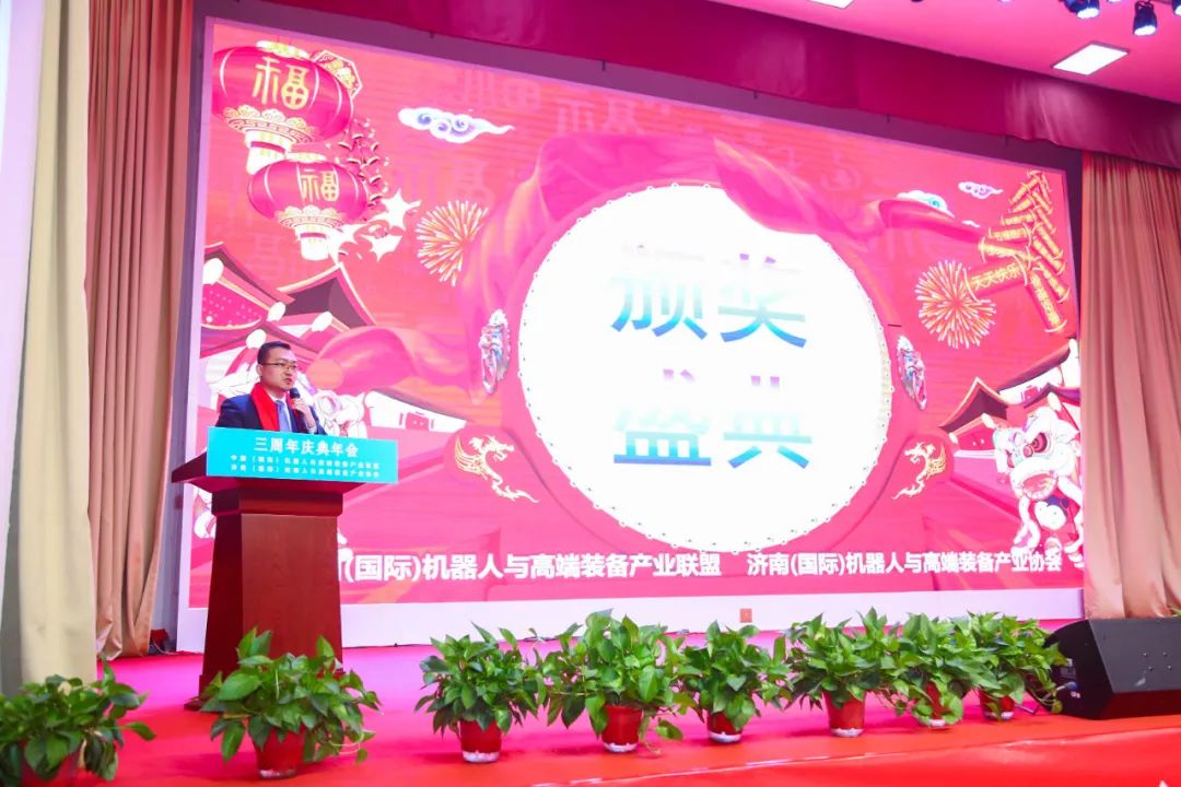 1月8日下午,中國(國際)機器人與高端裝備產業(yè)聯盟、濟南(國際)機器人與高端裝備產業(yè)協會隆重舉行協會成立三周年慶典和三生萬物虎虎生威迎春晚會。中、德、法120家企業(yè)200名代表參加會議,會議對三年來協會發(fā)展優(yōu)秀企業(yè)和個人進行了表彰,協會發(fā)布了促進內循環(huán)與雙循環(huán)增進產業(yè)鏈配套的倡議書,與中央廣播電視總臺中國交通廣播進行了合作簽約以及產學研、產業(yè)鏈合作等簽約,協會藝術團組織了精彩的文藝節(jié)目助力三周年慶典。