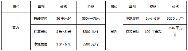 3. 凈地展位:不含任何配套設(shè)施,由參展單位自行或委托設(shè)計(jì)、裝修,限定6個。