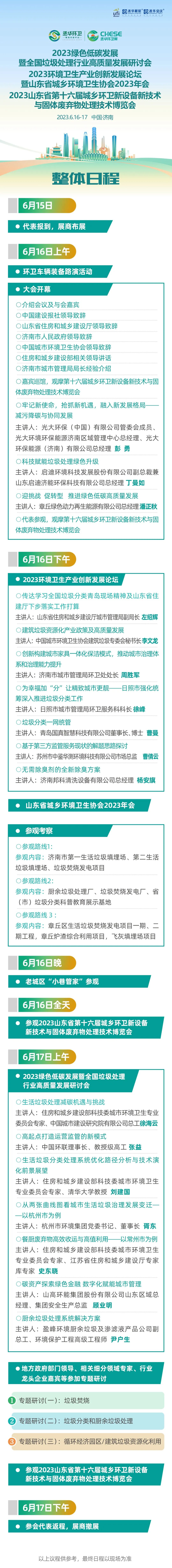 6月16日-17日,2023綠色低碳發(fā)展暨全國(guó)垃圾處理行業(yè)高質(zhì)量發(fā)展研討會(huì)、2023環(huán)境衛(wèi)生產(chǎn)業(yè)創(chuàng)新發(fā)展論壇、山東省城鄉(xiāng)環(huán)境衛(wèi)生協(xié)會(huì)2023年會(huì)、第十六屆城鄉(xiāng)環(huán)衛(wèi)新設(shè)備新技術(shù)與固體廢棄物處理技術(shù)博覽會(huì),將在山東國(guó)際會(huì)展中心舉辦。