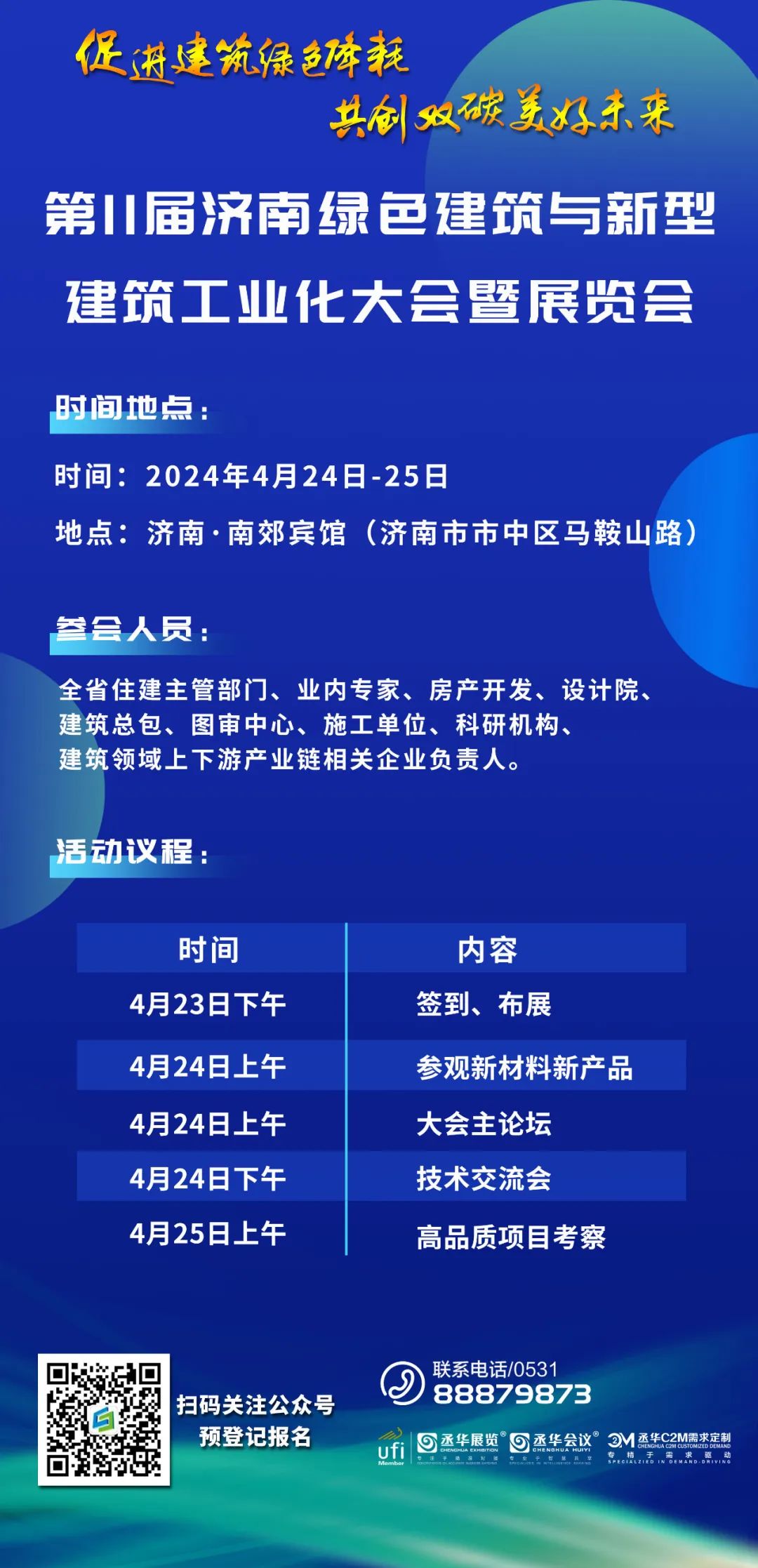 為積極推進(jìn)綠色低碳建筑的發(fā)展,助力建筑領(lǐng)域雙碳達(dá)標(biāo),在濟(jì)南市住房和城鄉(xiāng)建設(shè)局的指導(dǎo)下,“第11屆濟(jì)南綠色建筑與新型建筑工業(yè)化大會(huì)暨展覽會(huì)”定于2024年4月24-25日在濟(jì)南·南郊賓館隆重召開,同期召開2024第二屆濟(jì)南超低能耗建筑技術(shù)交流會(huì)、83節(jié)能標(biāo)準(zhǔn)優(yōu)質(zhì)產(chǎn)品展覽會(huì)。